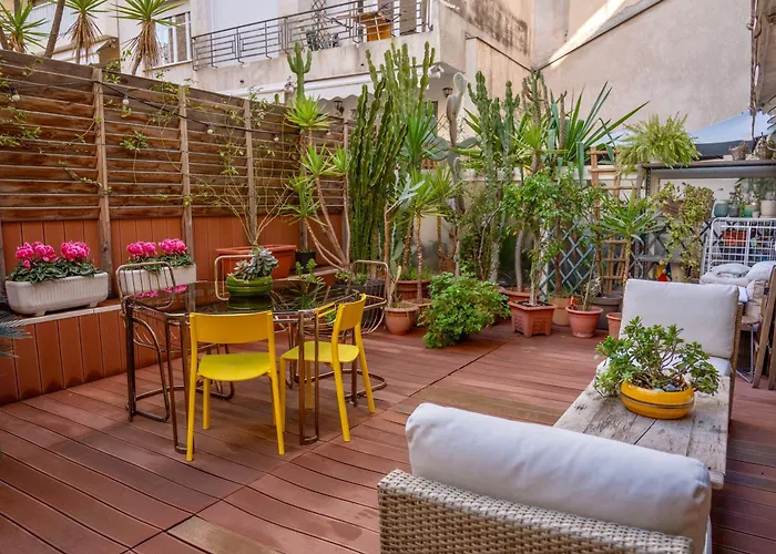 Cu vedere spre grădină, apartmentul Large Magnificent Terrace Apartment Nisa de 50 m² este situat în cartierul Gambetta, la mai puțin de 5 minute de mers pe jos de Casino supermarche.